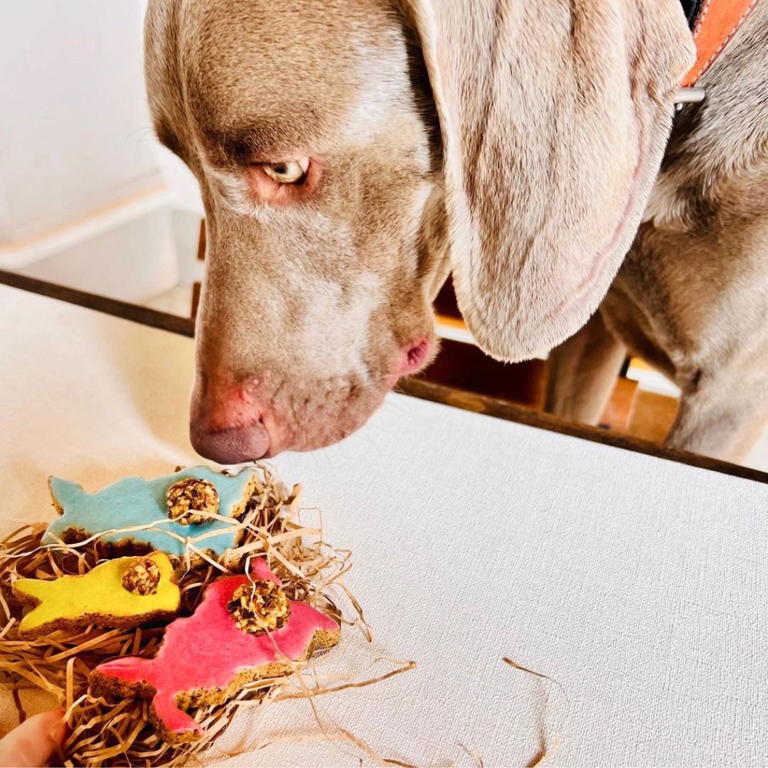 Leur glaçage délicat au yaourt et super-aliments naturels apporte une touche colorée et gourmande, parfaite pour célébrer Pâques avec votre chien. Fabriqués à la main et cuits au four avec soin, ces biscuits sont aussi beaux que bons.